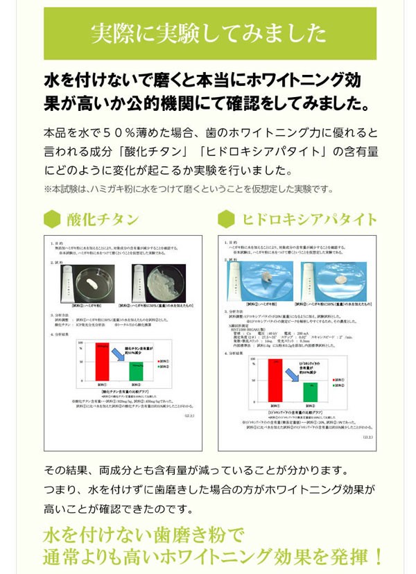 本款牙膏因无需沾水便可直接刷牙,因此本来就很浓厚的美白成分也可以直接渗透牙层,从而达到比现有牙膏更明显的美白效果。